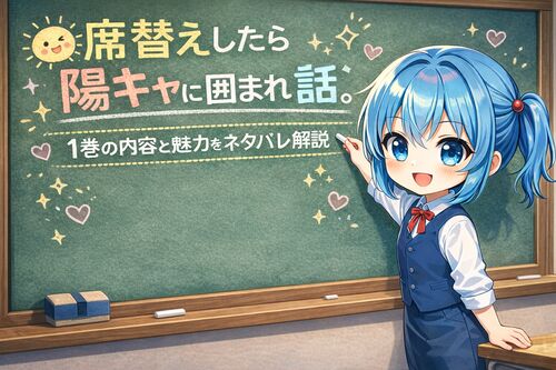 席替えをきっかけに、陰キャ主人公が陽キャたちに囲まれる学園ラブコメ『席替えしたら陽キャに囲まれた話。』。本記事では1巻の内容をネタバレ込みで解説し、キャラの魅力や見どころをわかりやすく紹介します。