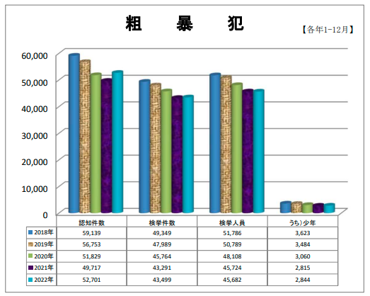 実際に傷害事件は一年に毎年5万件以上起きています。
